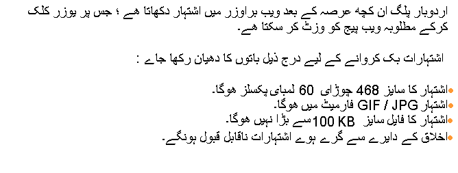 Following are the conditions for adding Banner Advertisements using UrduBar